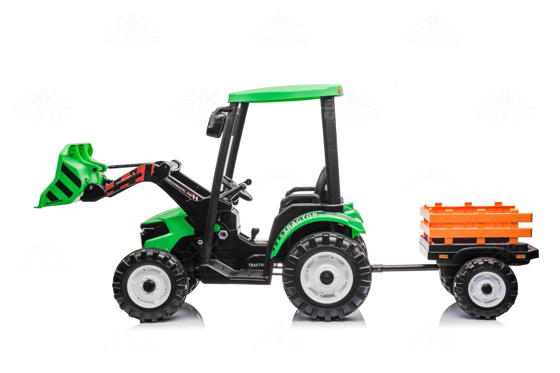 The Kalco Kidz 24V Green Tractor Edition combines strength, style, and functionality. Dual 200W motors deliver dependable power for towing and loading.